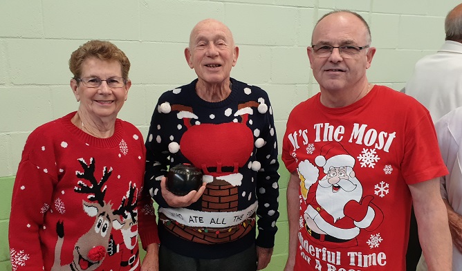 Norfolk Over 60’s, who meet fortnightly at Norfolk’s county venue in Hingham, enjoy their last squad day prior to Christmas. Organiser Teresa Goldsmith gave the players the choice of if they wanted a squad day this close to Christmas and enough players were keen to play to make the day viable. While some stuck to their normal bowls attire others could not resist dressing in a more seasonal manner.